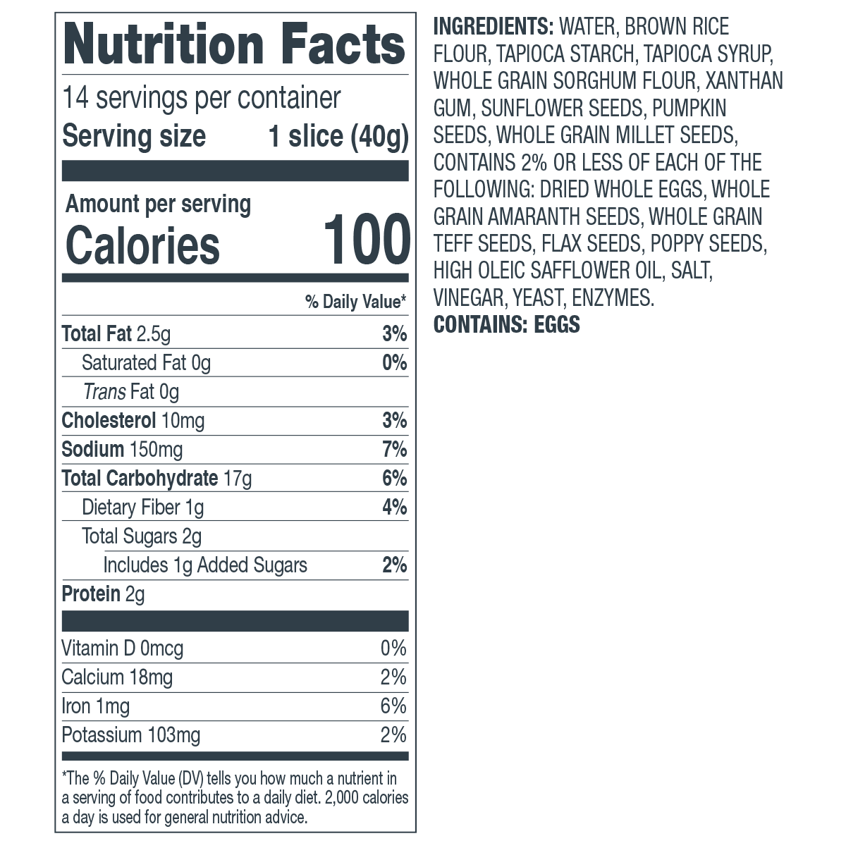 Hand crafted in a completely dedicated Gluten Free Bakery. Every loaf is baked with the finest ingredients to ensure the best flavor and outstanding texture our gluten free products are known for.
